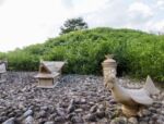 Constructed sometime from the late 4th century to the early 5th century, what makes this keyhole-shaped tomb particularly special is that we can both walk across the top of it, and see what kind of items were excavated from it. On its southeast side is a flat extension called a “tsukuri-dashi”. It was from this extension that a line of terracotta clay houses were excavated, and it is thought that these houses represented the living compound of the person buried in this tomb. Today, these terracotta clay houses have been recreated along with other items excavated from the tomb, such as pots and a bird, and are on display on this flat extension. The items give us a glimpse of the world at that time, allowing us to imagine why each item was chosen, and what kind of person may have been buried here.