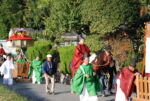 The Togyo Gyoretsu procession begins in the afternoon, when a procession of about 200 people walk 4 km one direction to Isonokami Jingu shrine’s Otabisho, a separate part of the shrine located in Ta Town. Along the way, the procession heads down the Tenri Main Street, which was once the main approach for Isonokami Jingu shrine, and turns onto the Kamikaido road, once a major highway of the region. In the procession, local people carry the Gohoren, a traditional carriage in which the deity of the shrine is enshrined. This Gohoren is the largest in Nara prefecture.