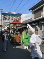 The Furu Matsuri festival begins at Isonokami Jingu shrine, and the procession walks about 4 km one direction to Ta Town. Along the way, they walk on the Tenri Main Street, which was once the main approach of Isonokami Jingu shrine. Today, the shopping arcade has a wide variety of traditional and modern shops, and is a place we can see some of the daily life of Tenri City. From there, they turn onto the Kamikaido road, which was once a major highway of the region, and maintains its traditional streetscape in many parts.