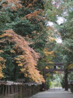 The shrine is located in a lush, green forest in the quiet foothills east of the center of the city. Where deities and nature co-exist along the Yamanobe-no-Michi path, its tranquil, sacred aura is even more beautiful in the rain.