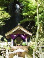 Just below the waterfall is a small shrine, called Isonokami Jinja shrine (different than Isonokami Jingu shrine). The narrow path that continues higher up the mountain from the waterfall is the trail for Mt. Okunimi. Along this trail is Daishin-ji temple, which was once Ryufuku-ji temple, and had monks who came to the waterfall to train.